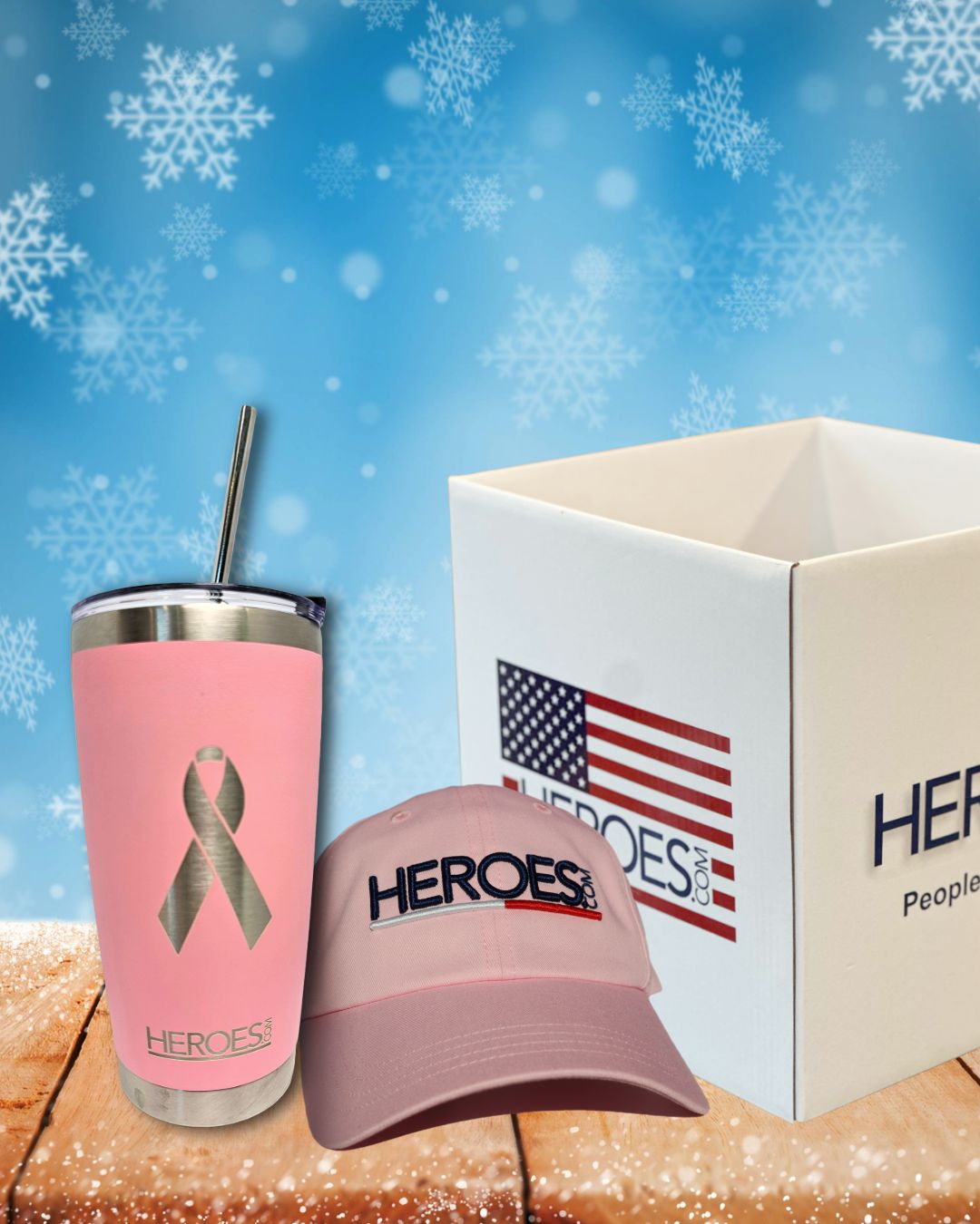 Honor. Empower. Inspire. Show support for fighters, survivors, and the families who stand beside them with a limited-edition pink 20 oz tumbler etched with the breast cancer ribbon, paired with a matching pink hat.