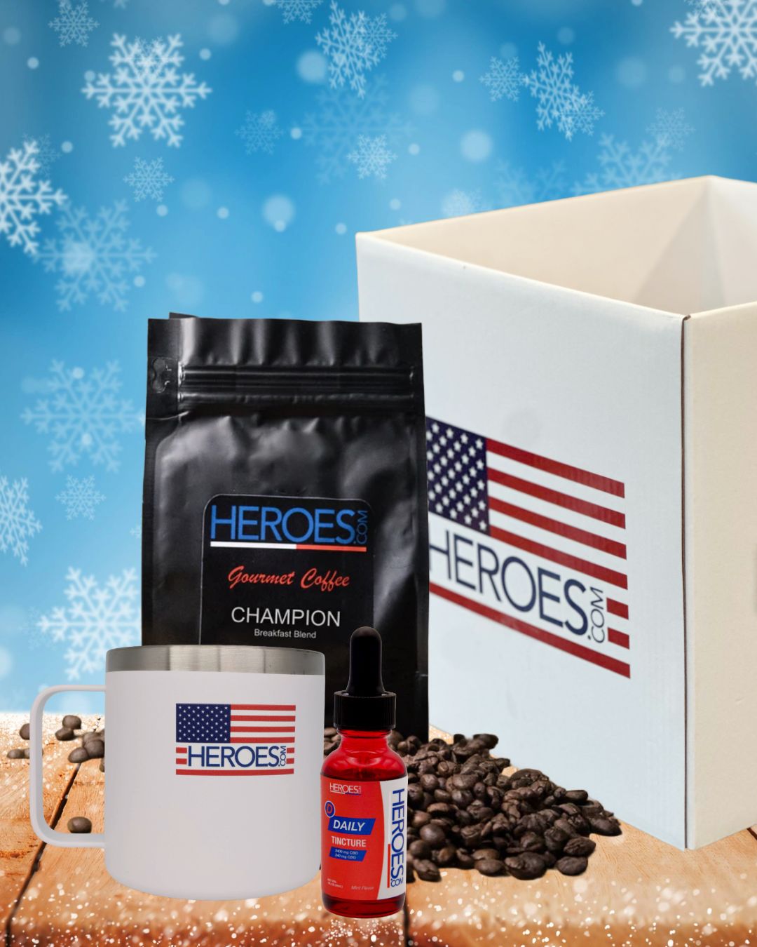 Jump-start the day with fresh Medium Roast whole bean coffee, a clean white HEROES mug, and Daily CBD to help keep your morning focused and balanced.